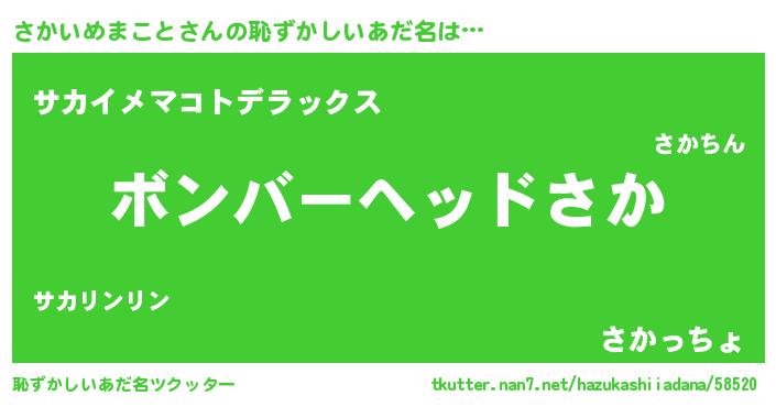 | 男性向けラノベタイトル風あだ名 | 『転生したらさかいめまことだった件』 |