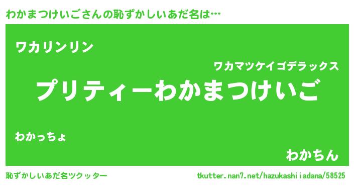 | 男性向けラノベタイトル風あだ名 | 『ワカマツケイゴアートオンライン』 |