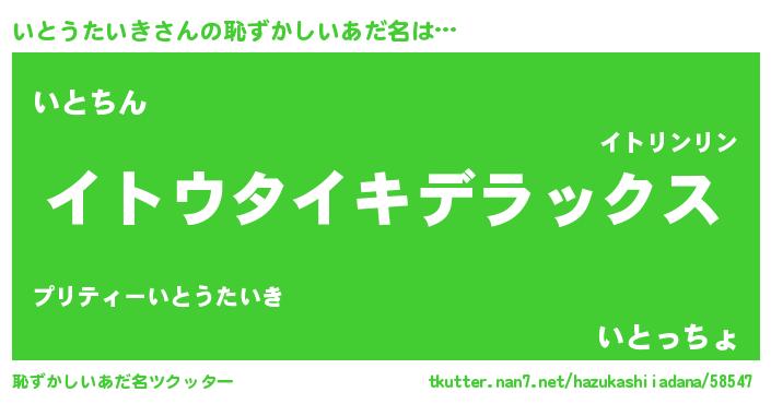 | 可愛いあだ名 | 『いとうちぇる』『いとうたいきママ』 |
