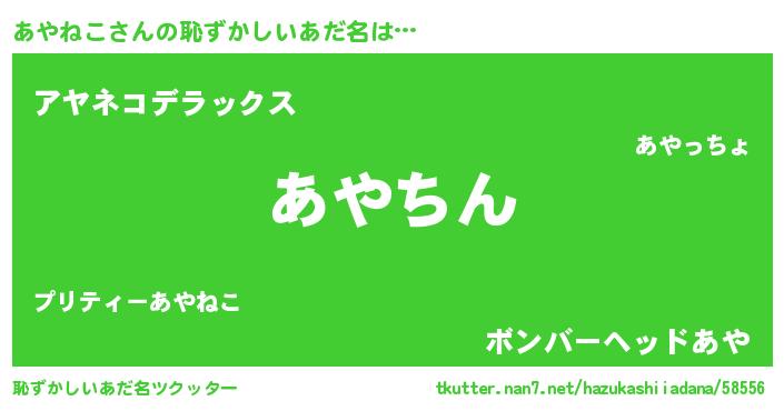 | ヘコむあだ名 | 『あやねこ(小並感)』『つくし』 |