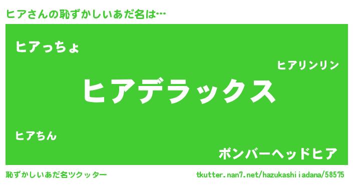 | 女子向けラノベタイトル風あだ名 | 『ヒアなんてお断りですっ。』 |