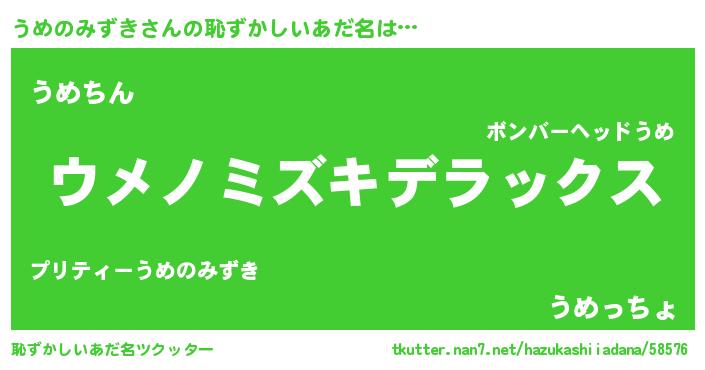 | 意味不明あだ名 | 『自称うめのみずき』 |