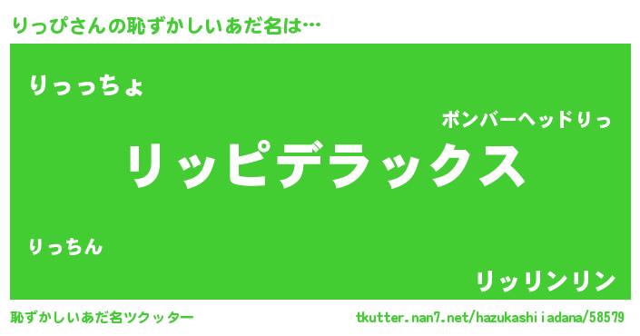 | 男性向けラノベタイトル風あだ名 | 『Re:りっぴから始める異世界生活』 |