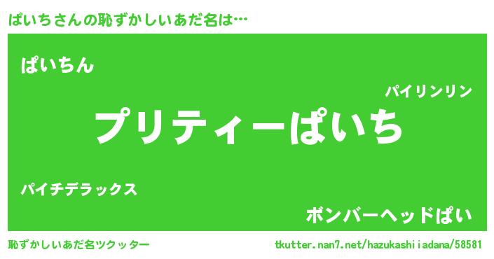 | 意味不明あだ名 | 『住所不定無職ぱいち(39歳)』 |