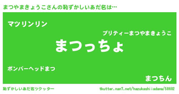 | 意味不明あだ名 | 『まつやまきょうこフォーエバー』 |