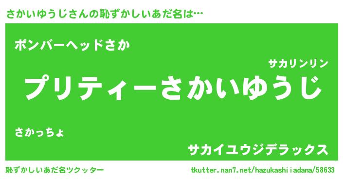 | 男性向けラノベタイトル風あだ名 | 『さかいゆうじの憂鬱』 |