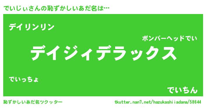 | 男性向けラノベタイトル風あだ名 | 『でいじぃ~年齢イコール彼女いない歴の魔法使い~』 |
