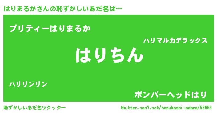 | ヘコむあだ名 | 『はりまるか(小並感)』『はりにゅー』 |