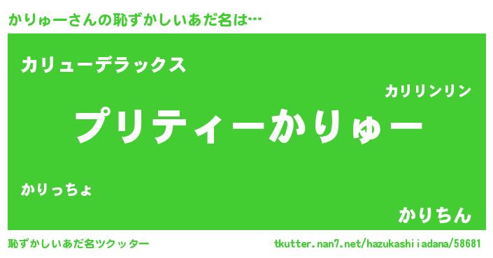 | 意味不明あだ名 | 『ペロリンかりゅー』『自称かりゅー』 |