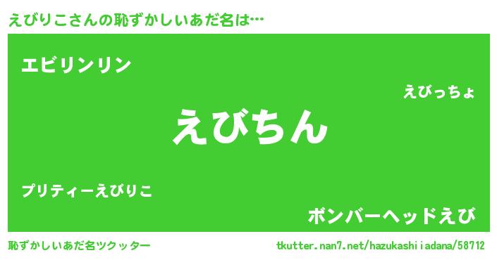 | ヘコむあだ名 | 『えびりこ(笑)』『えびを』『豆乳』 |