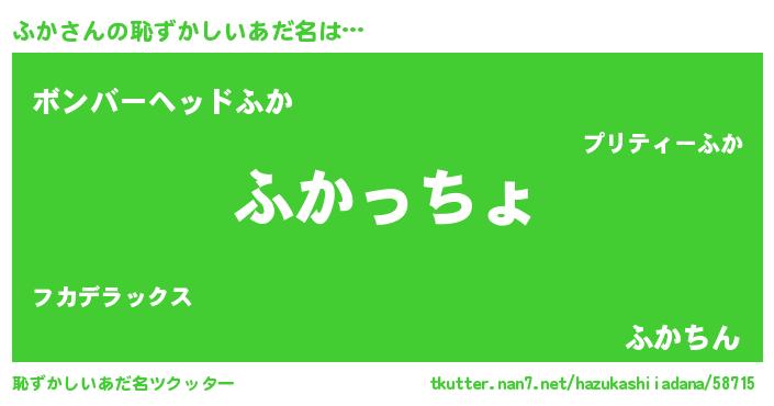 | 意味不明あだ名 | 『住所不定無職ふか(9歳)』『永久保存ふか』 |