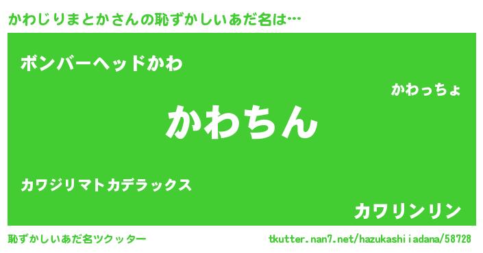 | ヒーロー風カッコイイあだ名 | 『仮面カワダー』『ネオカワジリマトカ』 |