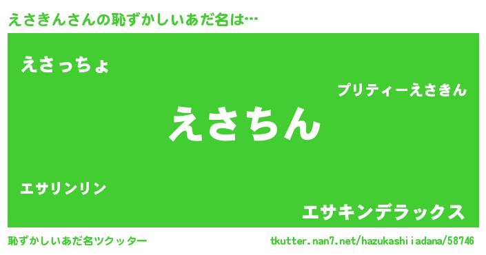 | ヒーロー風カッコイイあだ名 | 『ネオエサキン』『ウルトラえさきんマン』 |