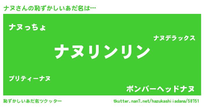 | 意味不明あだ名 | 『とにかく怪しいナヌ』『自称ナヌ』 |