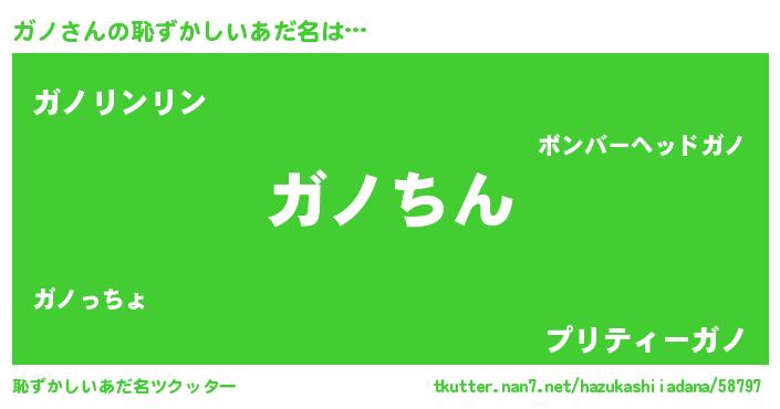 | 男性向けラノベタイトル風あだ名 | 『転生したらガノだった件』『緋弾のガノ』 |