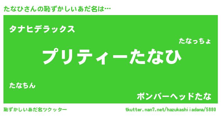 | ヒーロー風カッコイイあだ名 | 『仮面タナダー』『スーパータナヒ』 |