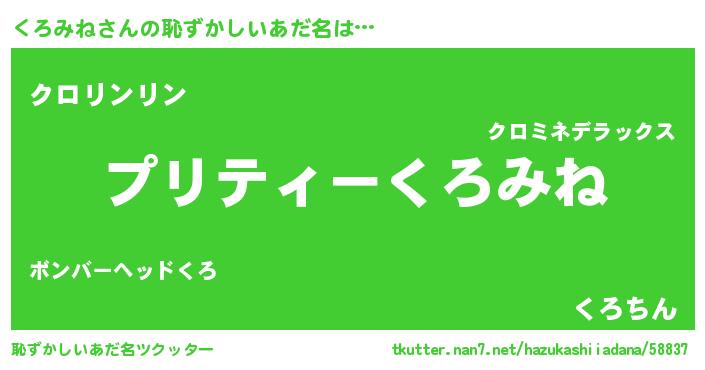 | ヘコむあだ名 | 『くろにー』『くろぷりん』『つくし』 |