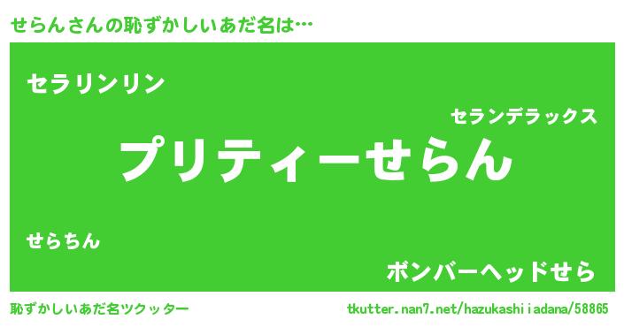 | 男性向けラノベタイトル風あだ名 | 『緋弾のセラン』『魔弾の王とせらん』 |