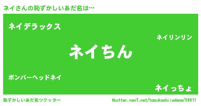 | ヒーロー風カッコイイあだ名 | 『ネオネイ』『究極戦士ネイ』 |