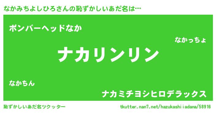 | 男性向けラノベタイトル風あだ名 | 『ダンジョンになかみちよしひろを求めるのは間違っているだろうか』 |