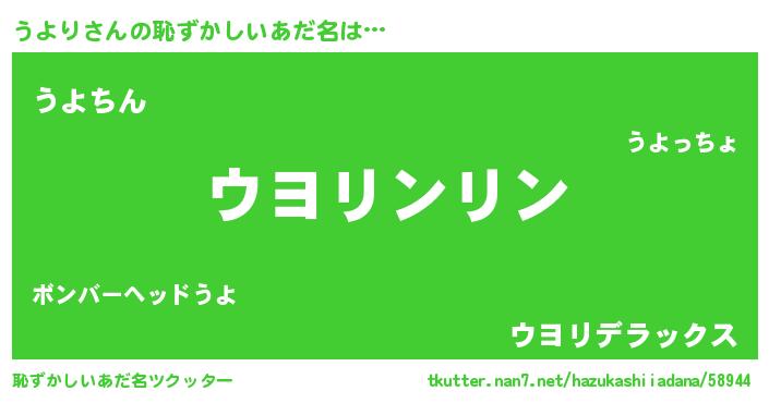 | ヘコむあだ名 | 『うよっちょ』『うより(小並感)』 |