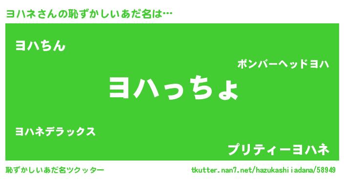 | ポケモン風あだ名 | 『ヨハネダネ』『ゼニヨハ』 |