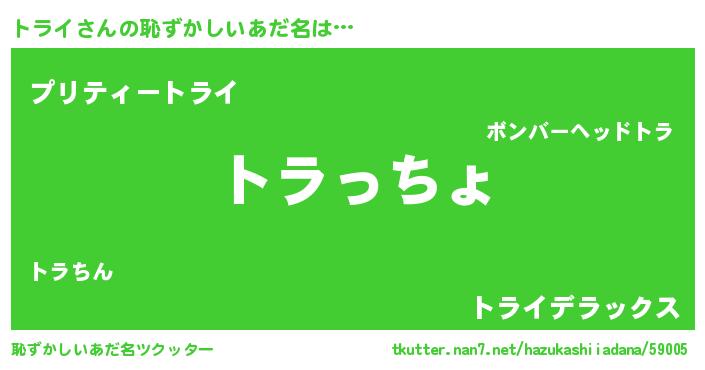 | 意味不明あだ名 | 『トライフォーエバー』『ペロリントライ』 |