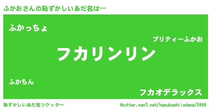 | 男性向けラノベタイトル風あだ名 | 『ふかおの嫁は女の子じゃないと思った?』 |
