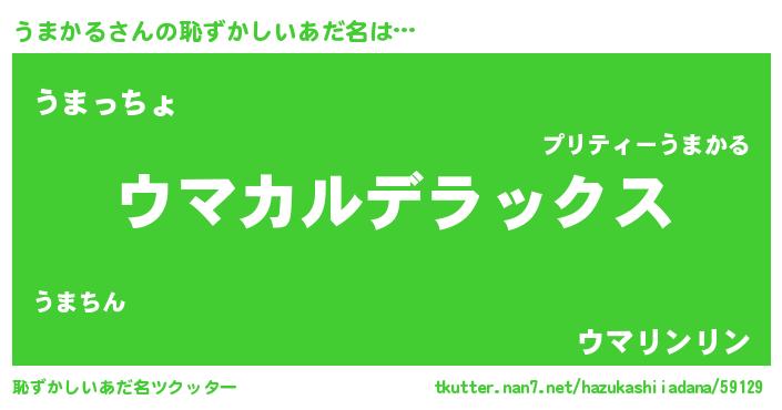 | 女子向けラノベタイトル風あだ名 | 『うまかるなんてお断りですっ。』 |