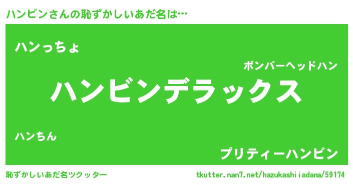| ヒーロー風カッコイイあだ名 | 『最強戦士ハンビン』『スーパーハンビン』 |