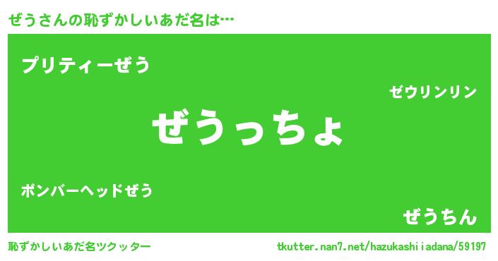 | 意味不明あだ名 | 『ぜうフォーエバー』『ペロリンぜう』 |