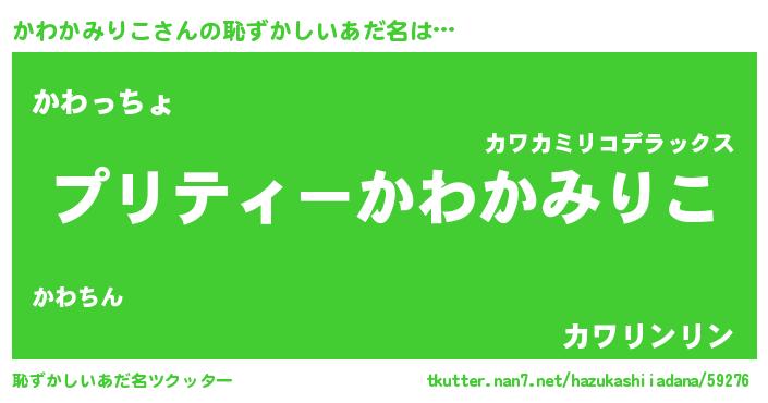 | 男性向けラノベタイトル風あだ名 | 『カワカミリコアートオンライン』 |