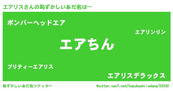 | ヒーロー風カッコイイあだ名 | 『ネオエアリス』『正義の使者エアリス』 |