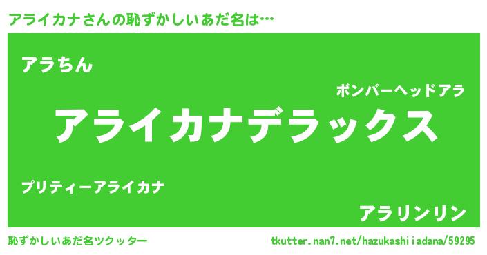 | 意味不明あだ名 | 『自称アライカナ』『永久保存アライカナ』 |