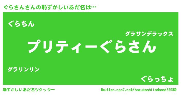 | 意味不明あだ名 | 『ペロリンぐらさん』『永久保存ぐらさん』 |