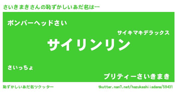 | 意味不明あだ名 | 『とにかく怪しいさいきまき』 |