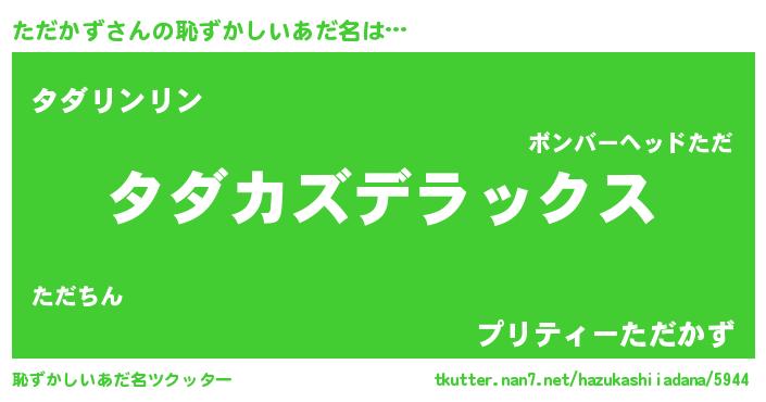| 男性向けラノベタイトル風あだ名 | 『Re:ただかずから始める異世界生活』 |