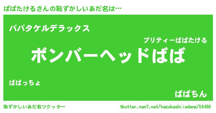 | ヘコむあだ名 | 『ばばたける(笑)』『ばばふぇ~』 |
