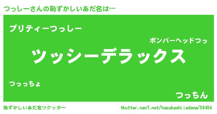 | 男性向けラノベタイトル風あだ名 | 『ツッシースレイヤー』『つっしーの憂鬱』 |