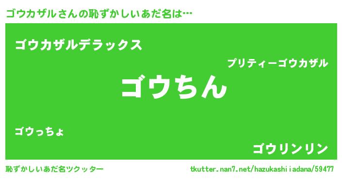 | ヘコむあだ名 | 『ゴウカザル(遠い目)』『ゴウを』 |