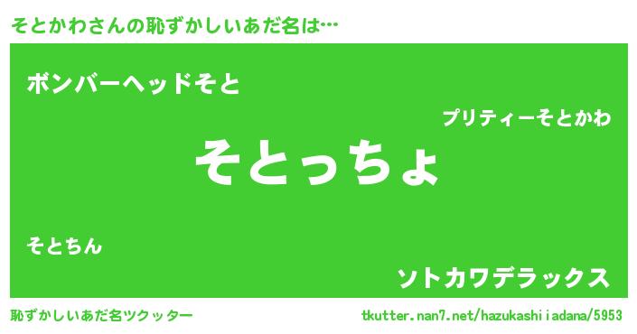 | 意味不明あだ名 | 『住所不定無職そとかわ(1歳)』 |