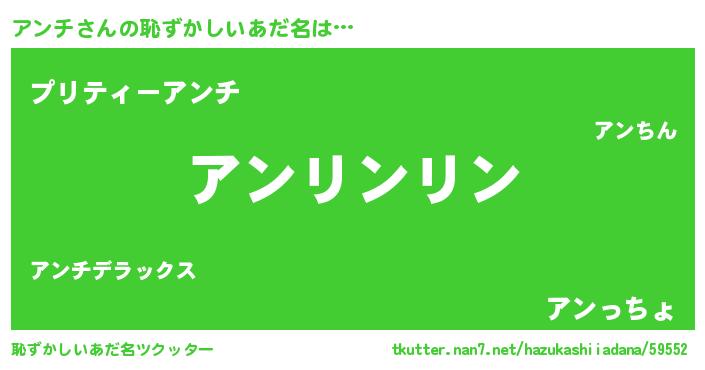| ヘコむあだ名 | 『アンぷりん』『アンっふぃ~』 |