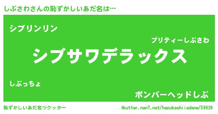 | 男性向けラノベタイトル風あだ名 | 『シブサワスレイヤー』 |