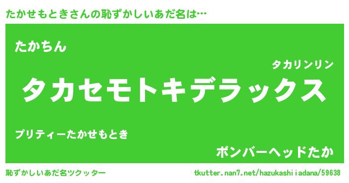 | 意味不明あだ名 | 『自称たかせもとき』 |