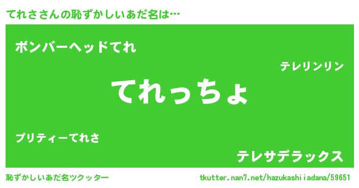 | 意味不明あだ名 | 『てれさフォーエバー』『自称てれさ』 |
