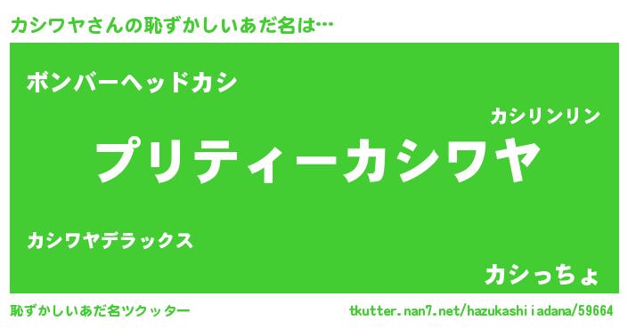 | 男性向けラノベタイトル風あだ名 | 『カシワヤの憂鬱』 |