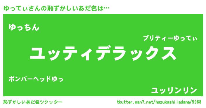 | 意味不明あだ名 | 『自称ゆってぃ』『永久保存ゆってぃ』 |