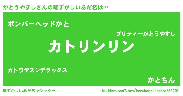 | 男性向けラノベタイトル風あだ名 | 『かとうやすしの嫁は女の子じゃないと思った?』 |