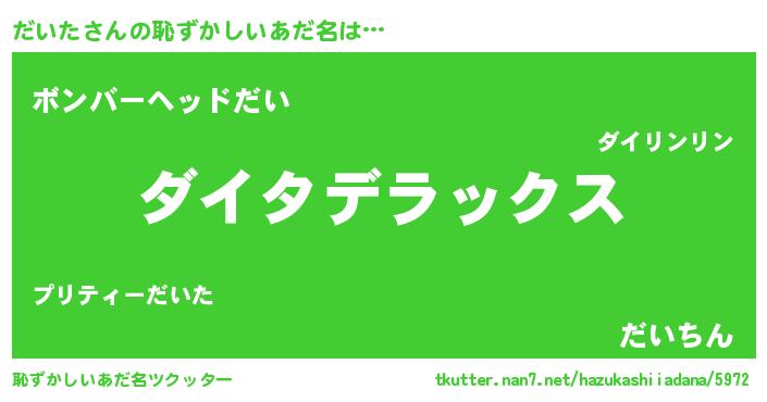 | ヒーロー風カッコイイあだ名 | 『最強戦士ダイタ』『正義の使者だいた』 |