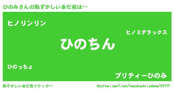 欧米人風あだ名 | 『ダレノガレひのみ』『ウサインひのみ』 |